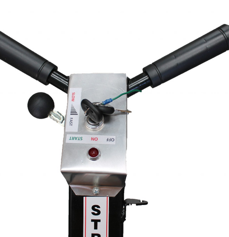 A 12 volt push-button start, fires the 13hp (9.69 kw), 4 stroke overhead valve Honda engine into action while the brushes are on the floor.