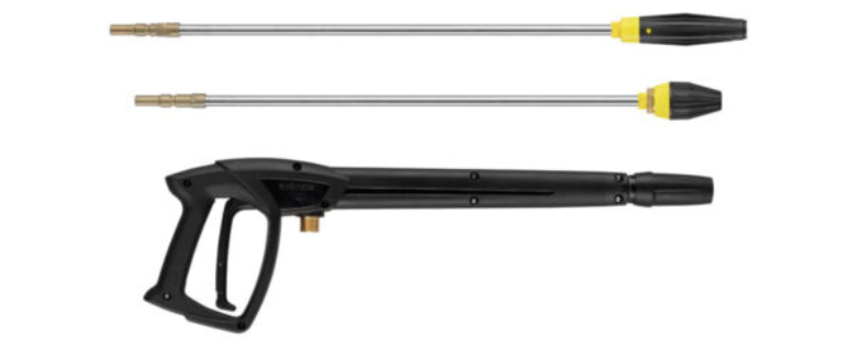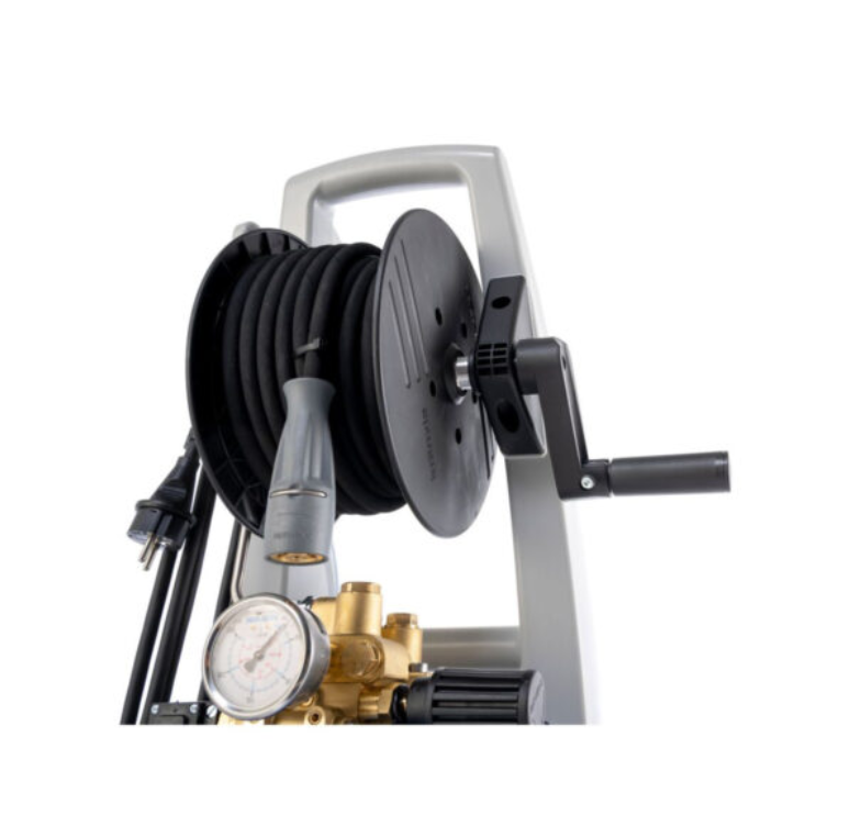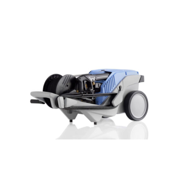 Robust cold water high-pressure cleaner 10amp (2800rpm) with Single-part Roto-Mould-chassis & 2 wheels, built-in storage for accessories, integrated hose reel and 15m Steel wire braided high-pressure hose. Total – Stop automatic switch off function improves seal life span & reduces power consumption, closing the safety trigger gun switches off the motor of the high-pressure cleaner immediately, relief of the high-pressure pump, increase of service life, and low-pressure detergent application. Brass pump head, Ceramic-coated pump pistons, Dry-run safety & Leakage return system, New Quick Release Plug-in system D12.