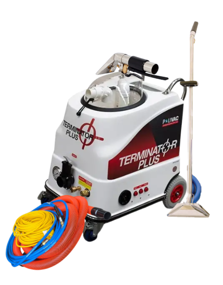 Terminator Plus Carpet machine With 10m Solution hose | 10m Vacuum hose with 2-jet, 12” Stainless Steel Wand